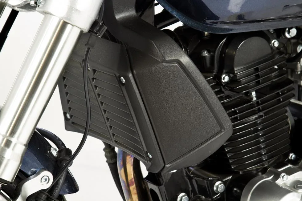 Una de las características que resalta su estilo Vintage es su Óptica Lenticular con Tecnología de Led de posición y su asiento tipo Cafe Racer con carenado removible, Suspensión Invertida de 37mm de diámetro, Doble Freno de Disco de 270 mm. de Diámetro con caliper flotante de doble pistón. Escape Sport Classic de acero inoxidable, está equipada con llantas de rayos reforzados, aros en cromo de alta calidad y neumáticos Racing High End.