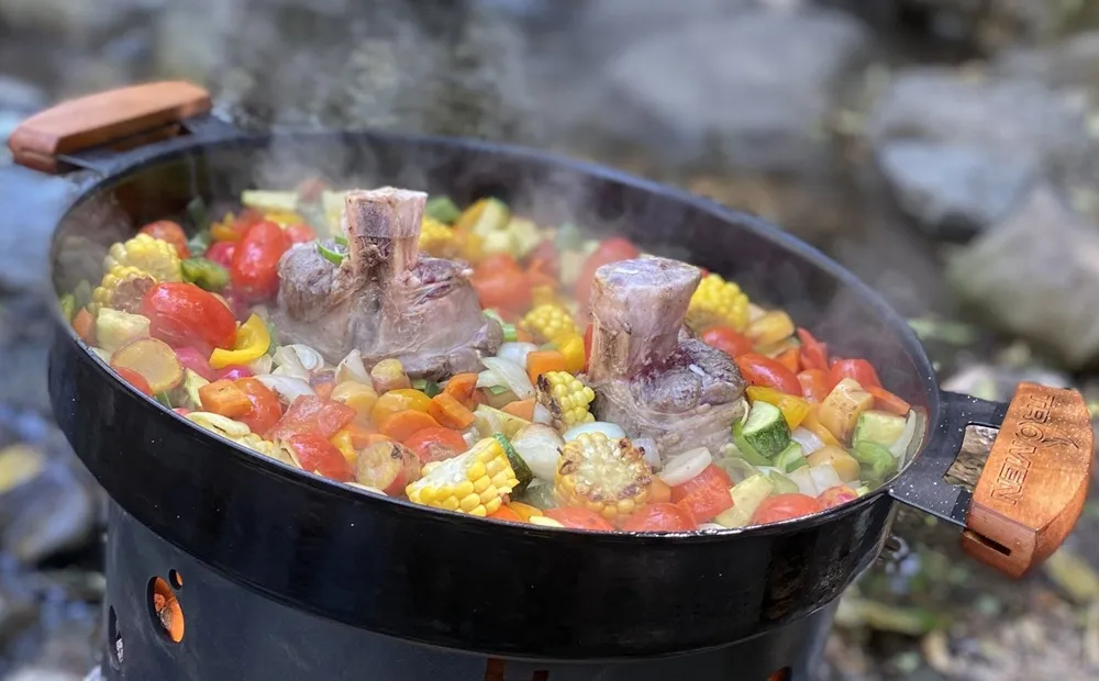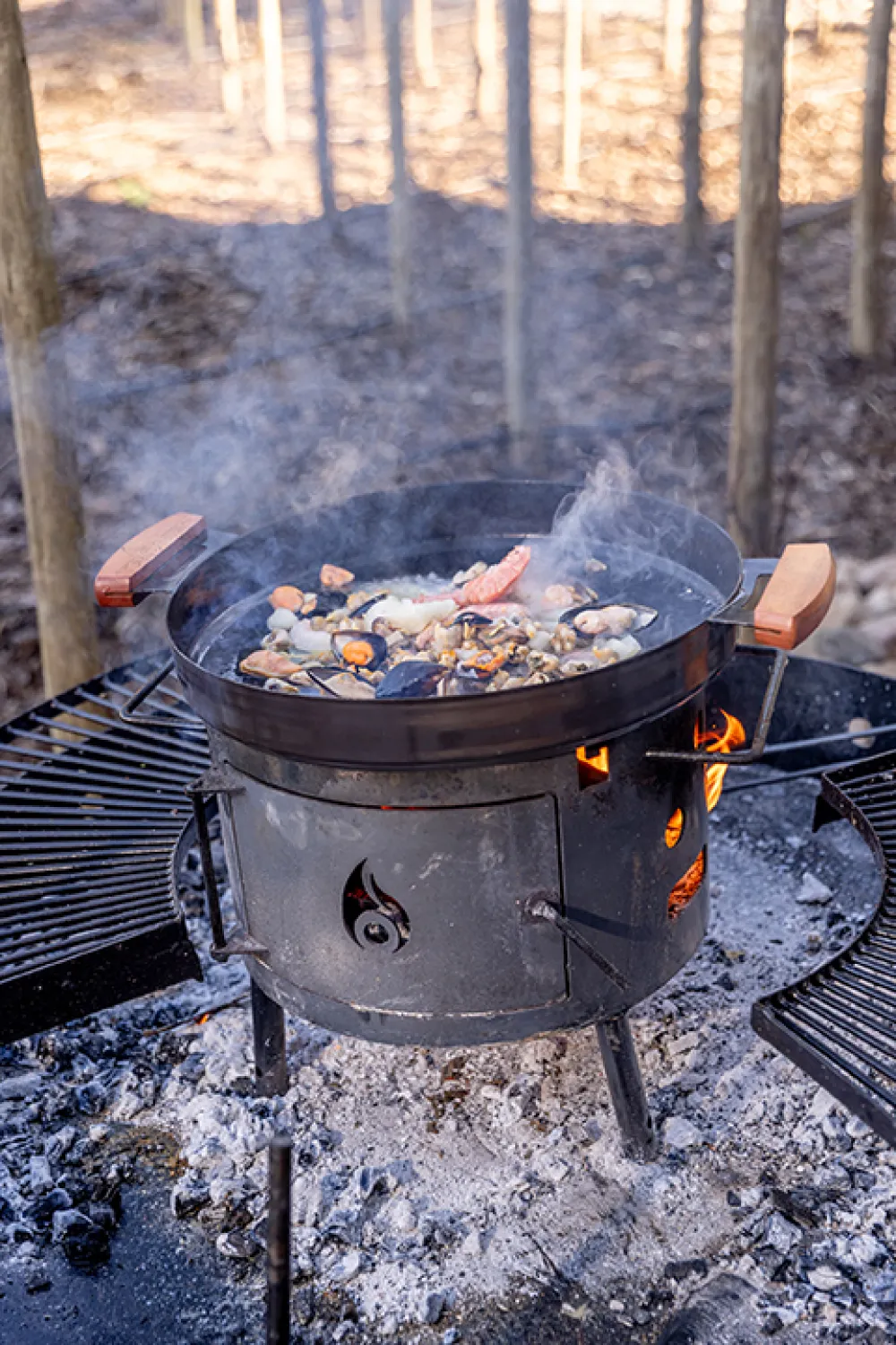 Características principales.Patas desmontables // superficie enlozada// Asas de madera.